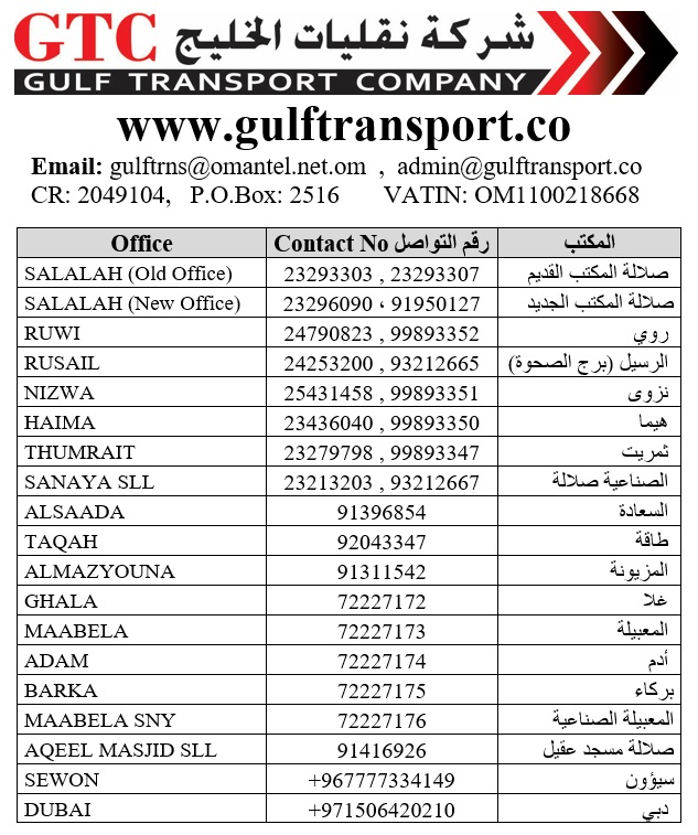 The company's headquarters are in Salalah and Ruwi, and it has branches in